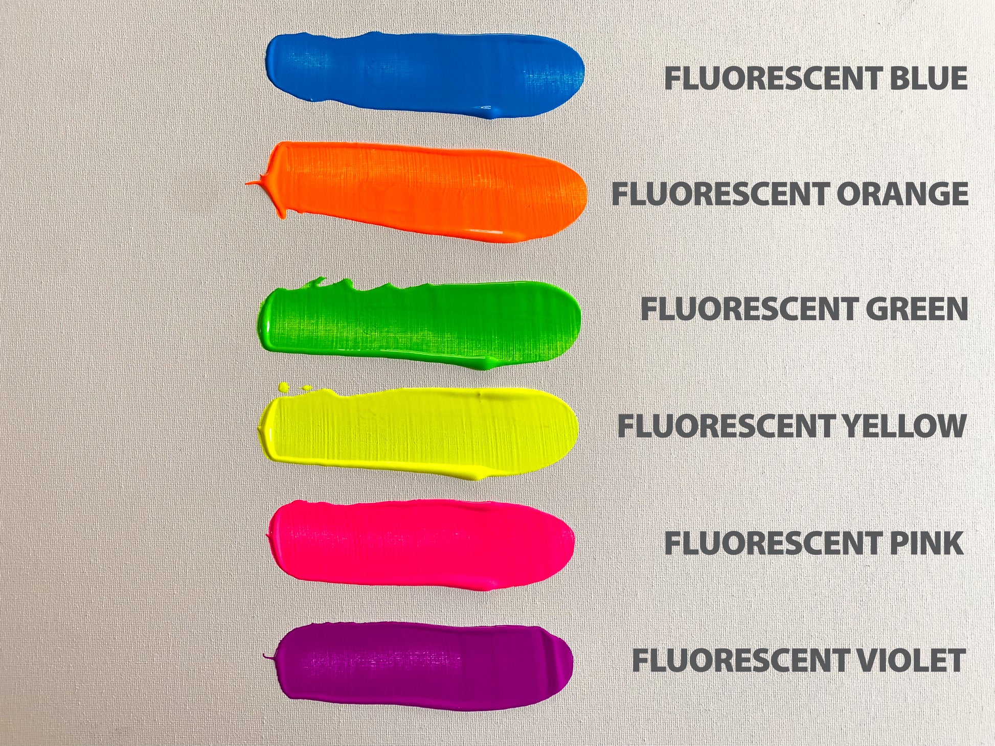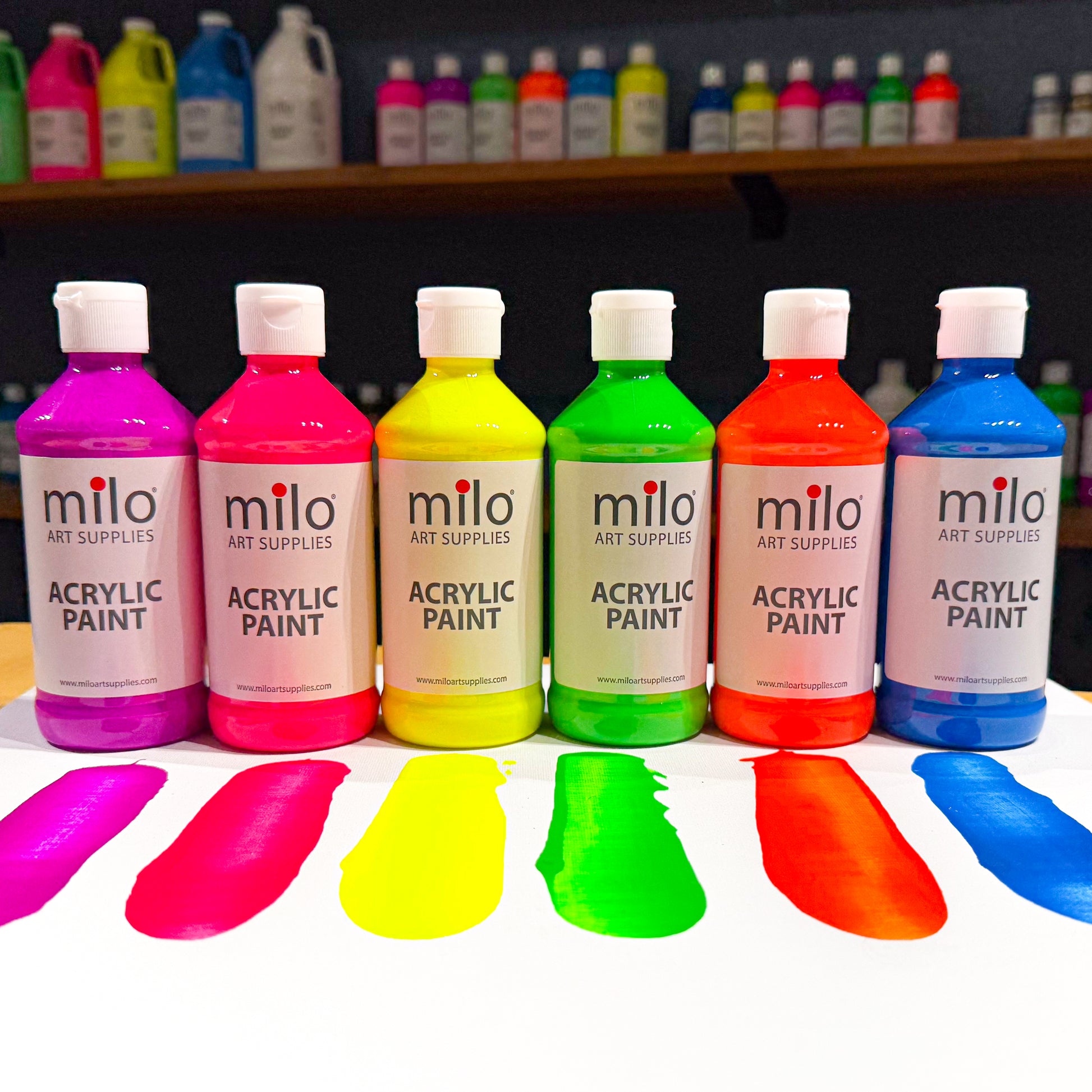 Milo Acrylic Fluorescent Paint Set of 6 Colors in 8 oz Bottles