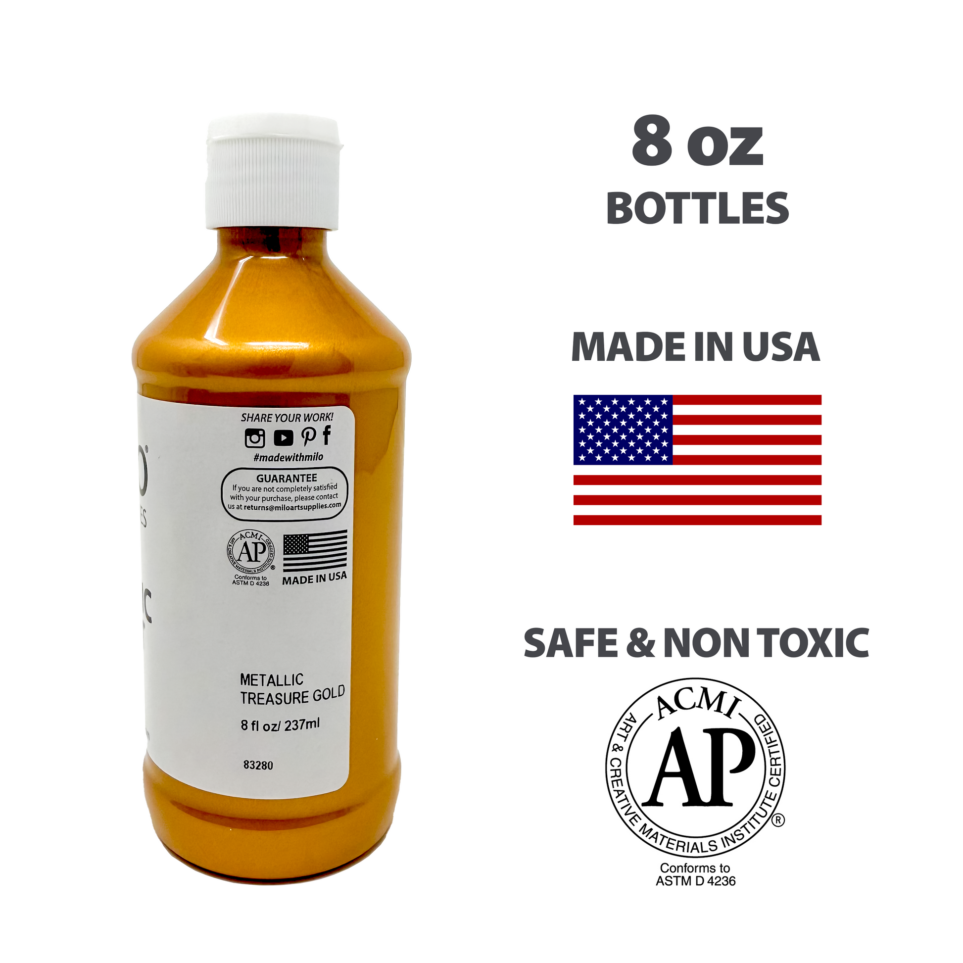Milo Acrylic Metallic Paint Set of 6 Colors in 8 oz Bottles