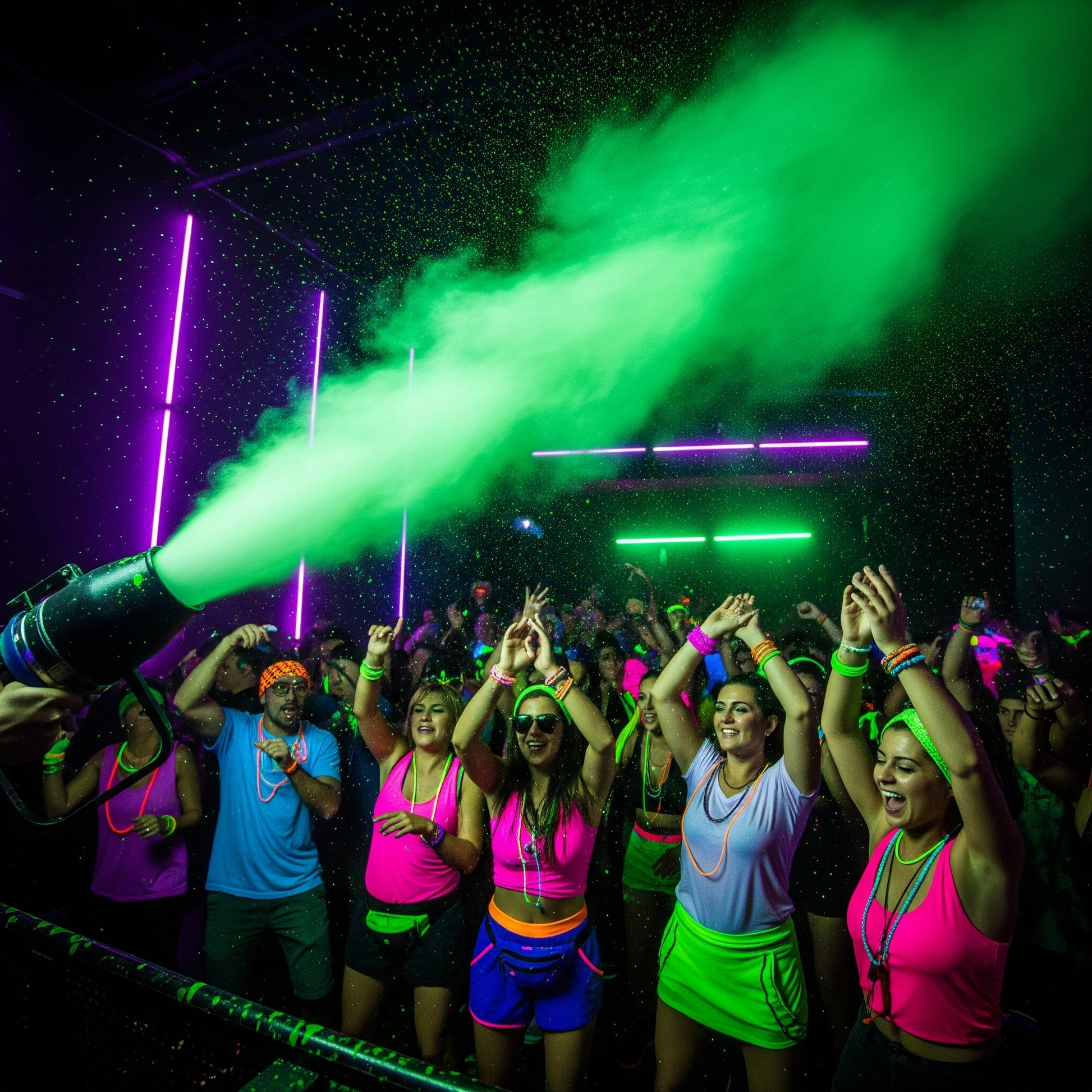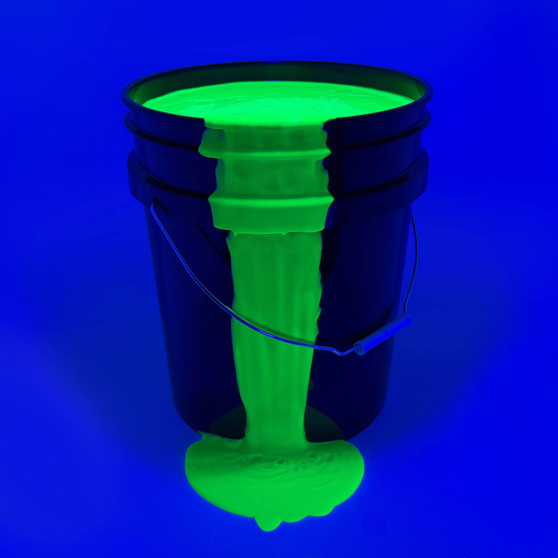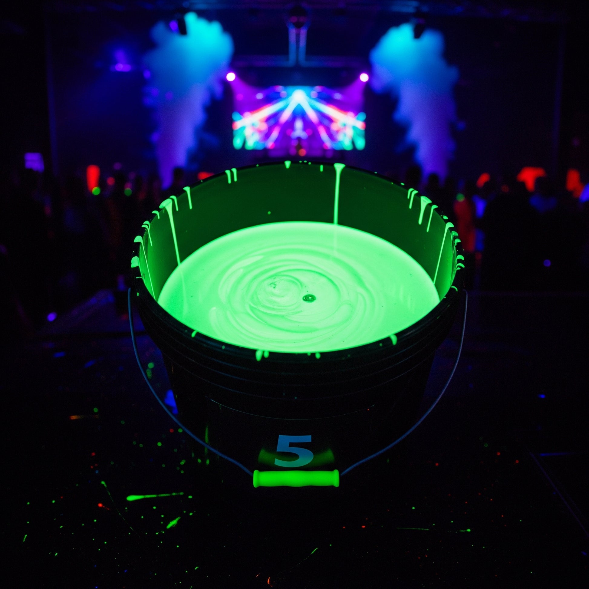 Transform any event into a glowing spectacle with this UV Neon paint in a generous 5-gallon container. Perfect for creating stunning visual effects at nightclubs, festivals, raves, parties, and theatrical productions, this vibrant paint comes alive under ultraviolet light. The fluorescent hue delivers eye-catching luminescence that stands out in dark environments and can be used in various applications such as paint cannons. Washes out of most materials, safe for skin, washable.