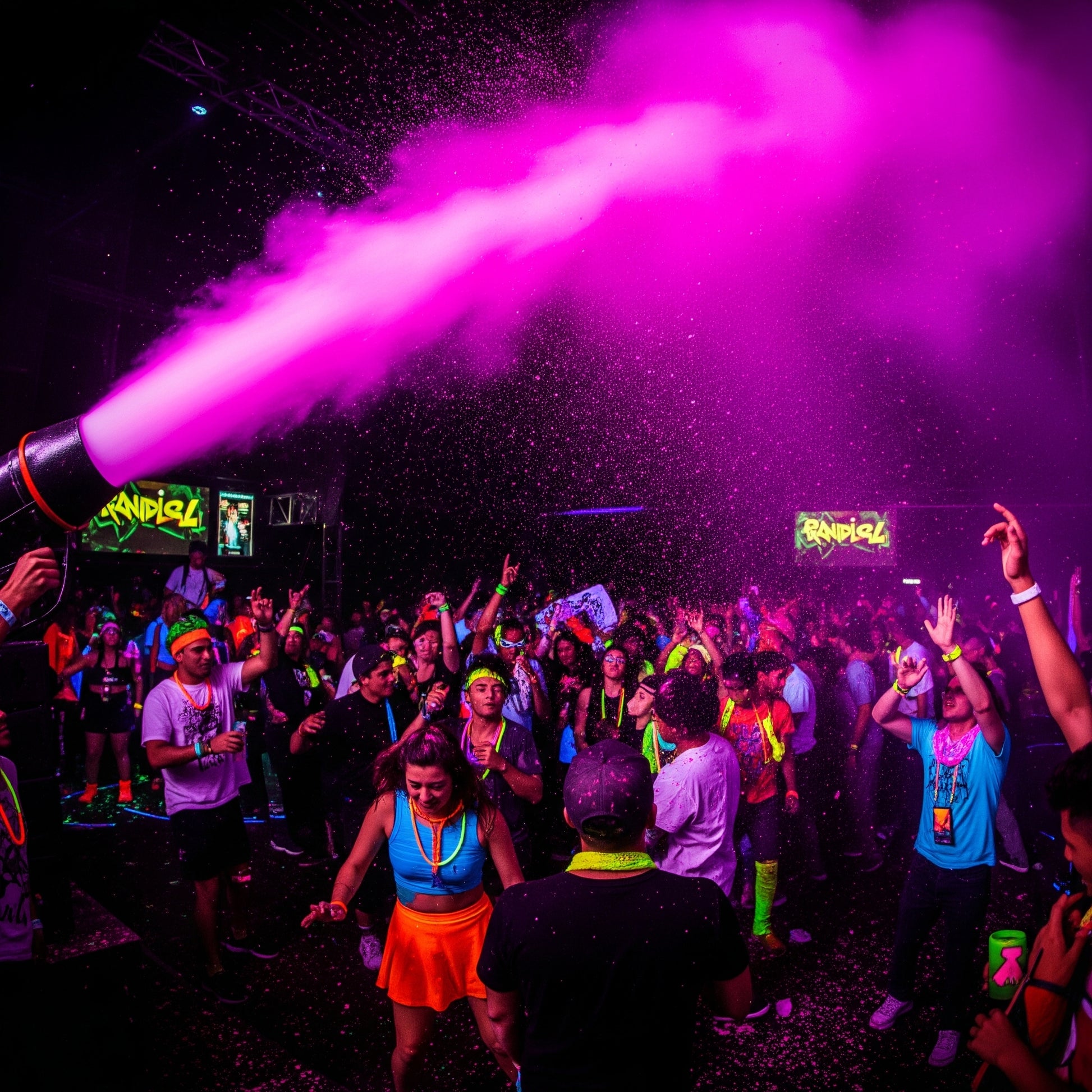 Transform any event into a glowing spectacle with this UV Neon paint in a generous 5-gallon container. Perfect for creating stunning visual effects at nightclubs, festivals, raves, parties, and theatrical productions, this vibrant paint comes alive under ultraviolet light. The fluorescent hue delivers eye-catching luminescence that stands out in dark environments and can be used in various applications such as paint cannons. Washes out of most materials, safe for skin, washable.
